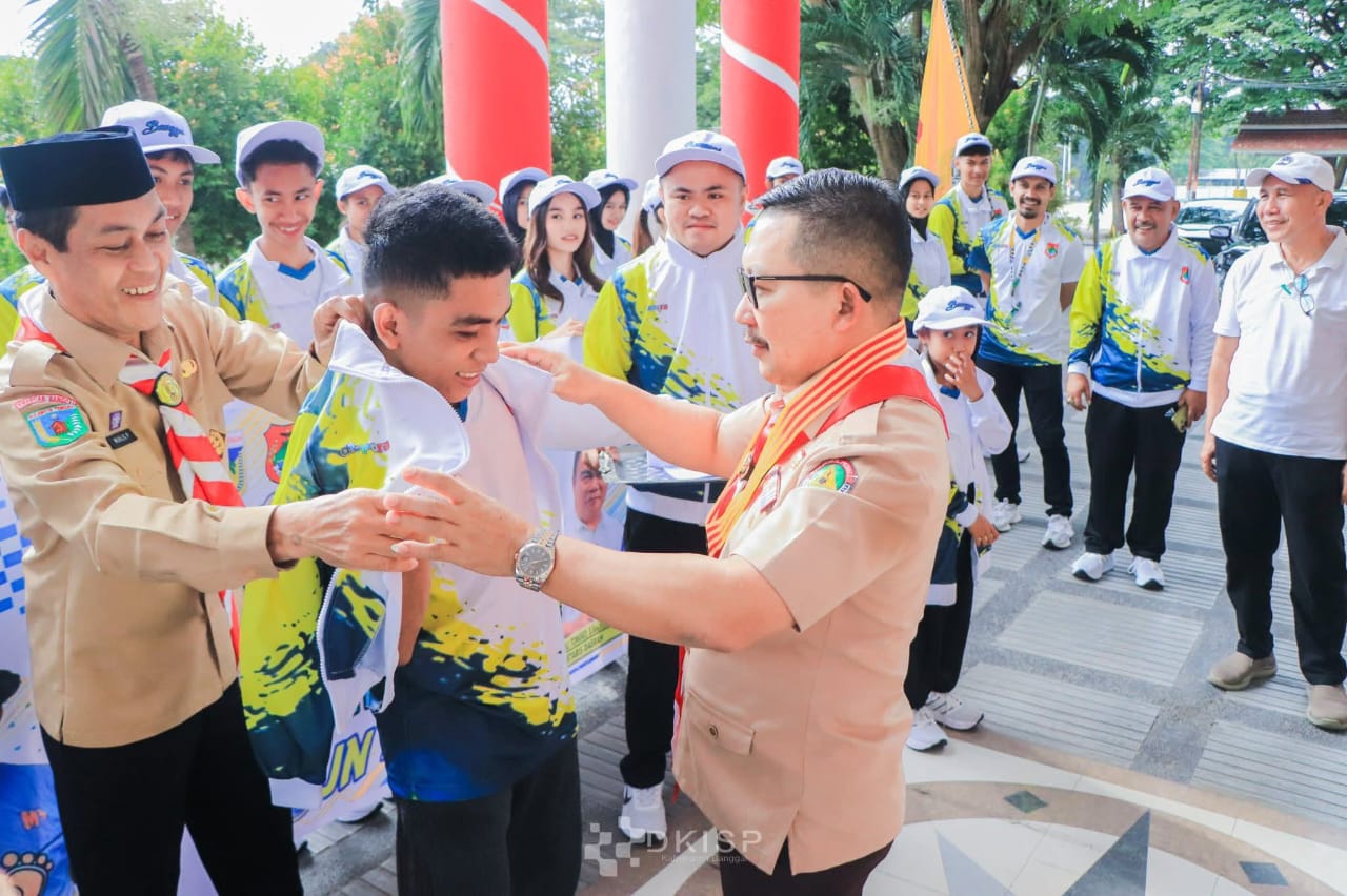 Banggai Three Fakta News-Bupati Banggai, H. Amirudin Tamoreka, melepas sebanyak 32 atlet pelajar untuk mengikuti Pekan Olah Raga Pelajar Daerah (Popda) Provinsi Sulawesi Tengah (Sulteng) tahun 2025 di Kota Palu, dari halaman Kantor Bupati Banggai, Jumat (22/8/2025).