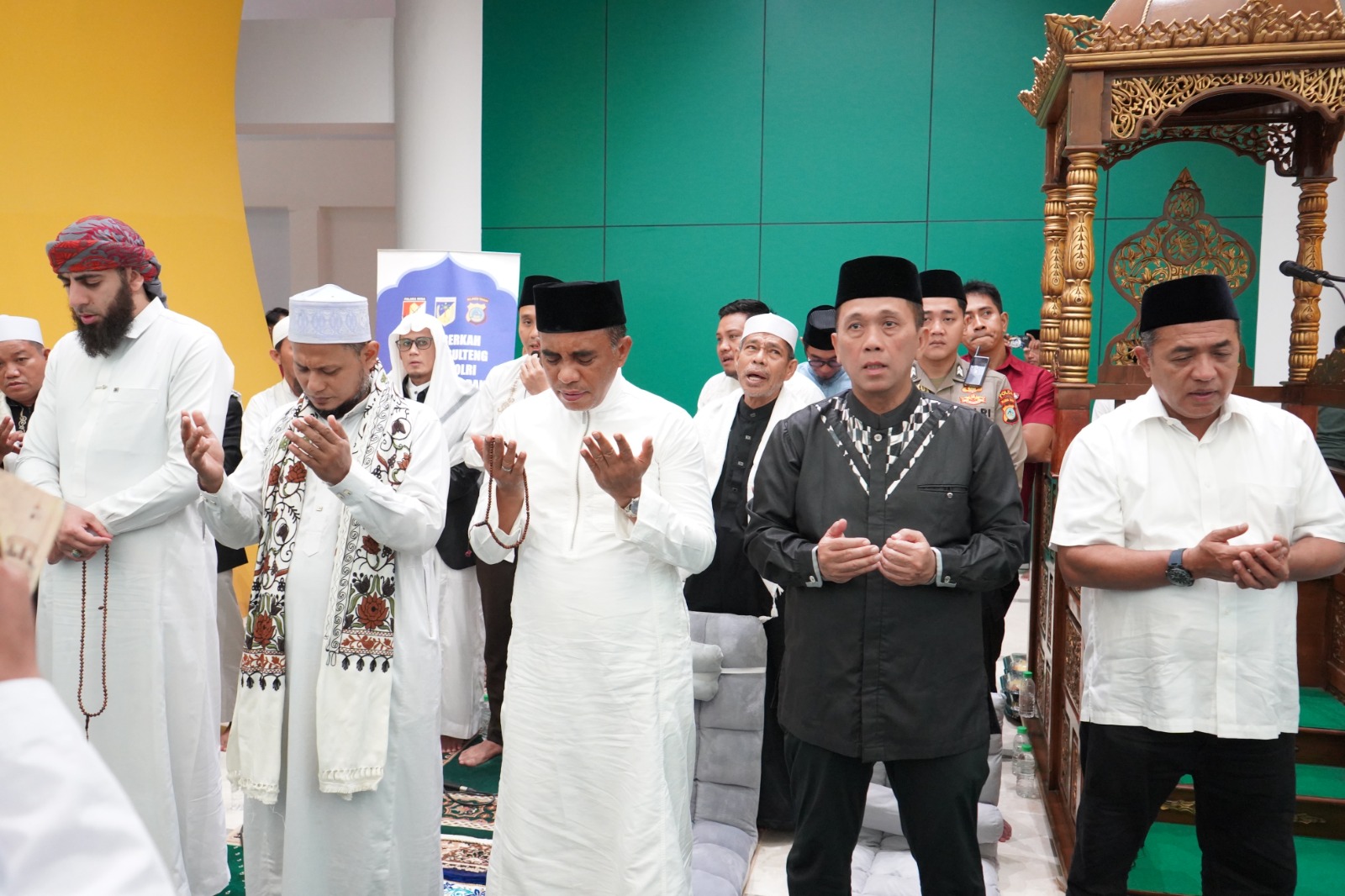 Rangkaian kegiatan diawali dengan lantunan Asma’ul Husna oleh Tim Asma’ul Husna Polda Sulteng, pembacaan ayat suci Al-Qur’an oleh Ust. H. Moh. Ridho Lasimpara, S.Pd., serta ceramah agama yang disampaikan oleh Dr. Fahmi Jawwas, Lc., M.A. dan Syeh Anas Jaber.