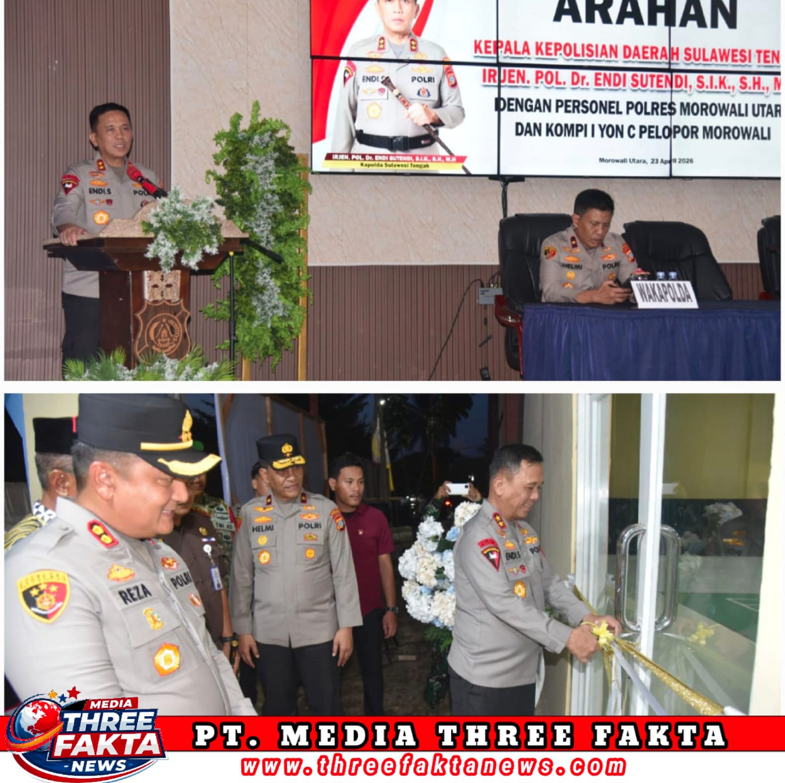 Morut Three Fakta News-Kepala Kepolisian Daerah (Kapolda) Sulawesi Tengah (Sulteng) Irjen Pol Dr  Endi Sutendi, didampingi Ketua Bhayangkari Ny. Maulida Endi Sutendi, melakukan kunjungan kerja (kunker), di Mapolres Morowali Utara (Morut), Kamis (23/4/2026).