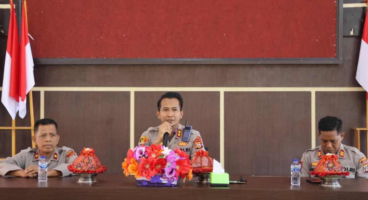 Touna Three Fakta News-Kapolres Touna AKBP Yanna Djayawidya, memimpin Analisis dan Evaluasi (Anev) bagi Bhabinkamtibmas dan pelatihan pengisian aplikasi FASIH Badan Pusat Statistik (BPS), dalam mendukung program ketahanan pangan nasional, di Aula Endra Darmalaksana Mapolres Touna, Rabu (15/10/2025).