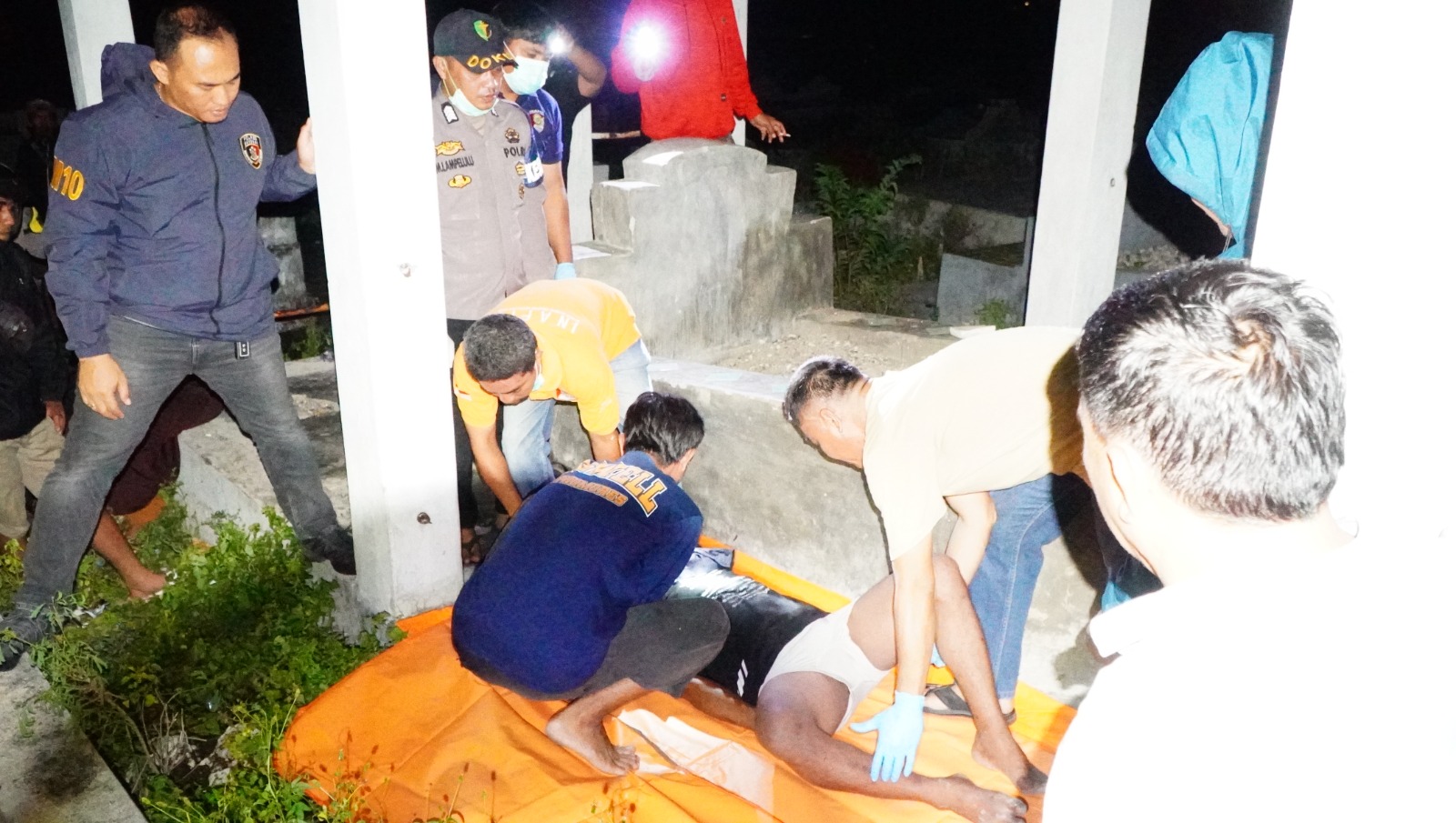 Banggai Three Fakta News-Aparat Polres Banggai melakukan olah Tempat Kejadian Perkara (TKP) penemuan mayat seorang pria inisial AU (39) warga Kompleks Rajawali Luwuk gantung diri di kompleks Pekuburan Cina, Jalan Pulau Kalimantan, Kelurahan Kompo, Kecamatan Luwuk Selatan, Senin (24/11/2025) malam.