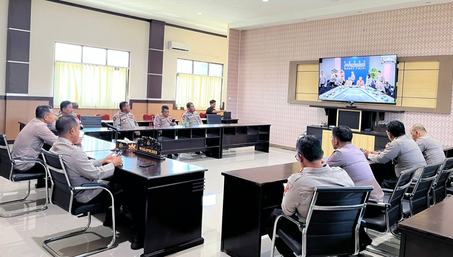 Banggai Three Fakta News-Kabag Ren Kompol I Nyoman Sudano didampingi Kabag SDM AKP Yuswanto Polres Banggai, memimpin forum belajar bersama Polri secara daring diikuti personel Polres serta Polsek jajaran, di Mapolres Banggai, Selasa (30/9/2025).