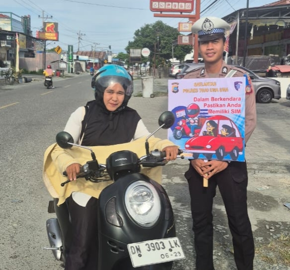 Touna Three Fakta News-Aparat Satuan Lalu Lintas Polres Tojo Una-Una (Touna), menggelar Operasi Zebra Tinombala 2025, dengan cara edukasi kepada para pengguna jalan yang melintas, di Jalan Moh Hatta, Kelurahan Uentanaga Atas, Kecamatan Ratolindo, Kabupaten Touna, Selasa (18/11/2025).