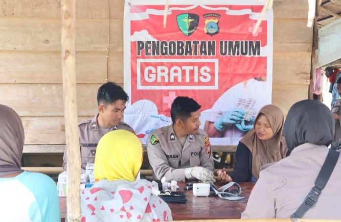 Touna Three Fakta News-Polres Tojo Una-Una (Touna) melalui Seksi Kedokteran dan Kesehatan (Sidokkes) menggelar pengobatan gratis bagi kelompok tani jagung, di Desa Sansarino, Kecamatan Ampana Kota, Kabupaten Touna, Rabu (8/10/2025)