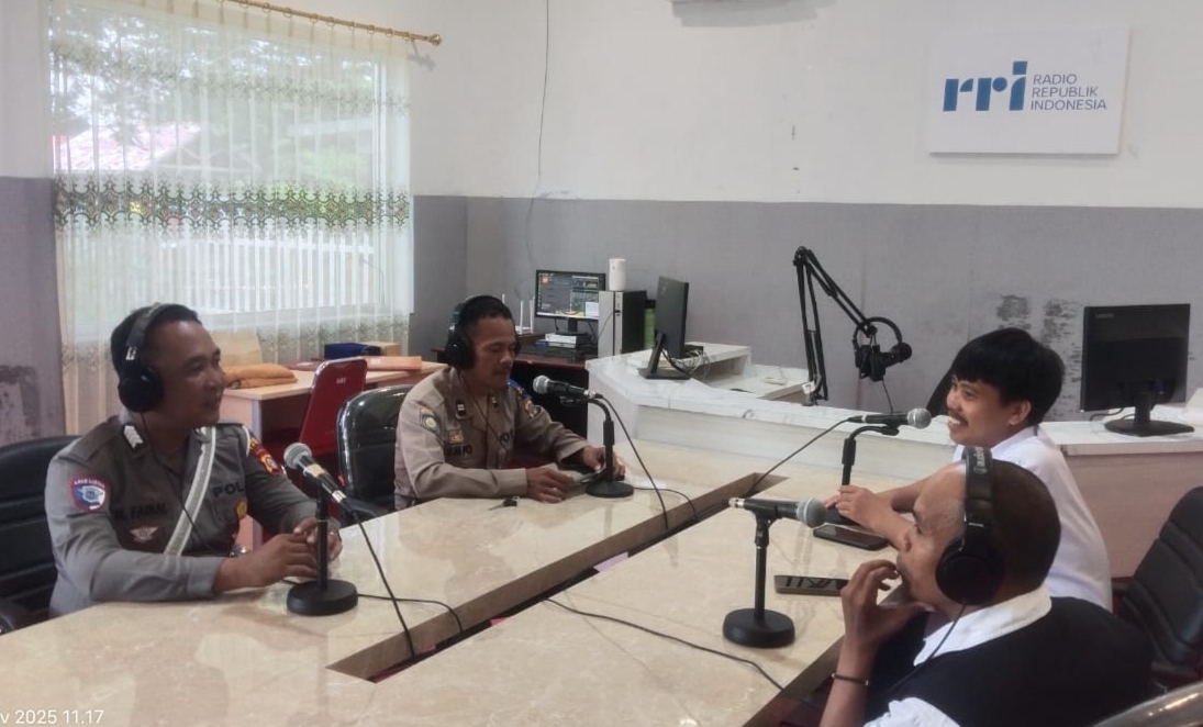 Touna Three Fakta News-Satuan Lalu Lintas (Satlantas) Polres Tojo Una-Una (Touna) menyosialisasikan keselamatan berlalu lintas melalui media elektronik terkait Operasi Zebra Tinombala 2025, dari RRI Ampana, Kabupaten Tojo Una-Una (Touna), Senin (24/11/2025).