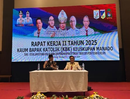 Palu Three Fakta News-Ketua Forum Kerukunan Umat Beragama (FKUB) Provinsi Sulawesi Tengah, Prof. Dr. Zainal Abidin, menghadiri Rapat Kerja (Raker) ke-II Kaum Bapak Katolik (KBK) Kevikepan Manado, di salah satu hotel di Kota Palu, mulai tanggal 12-13 Juli 2025.