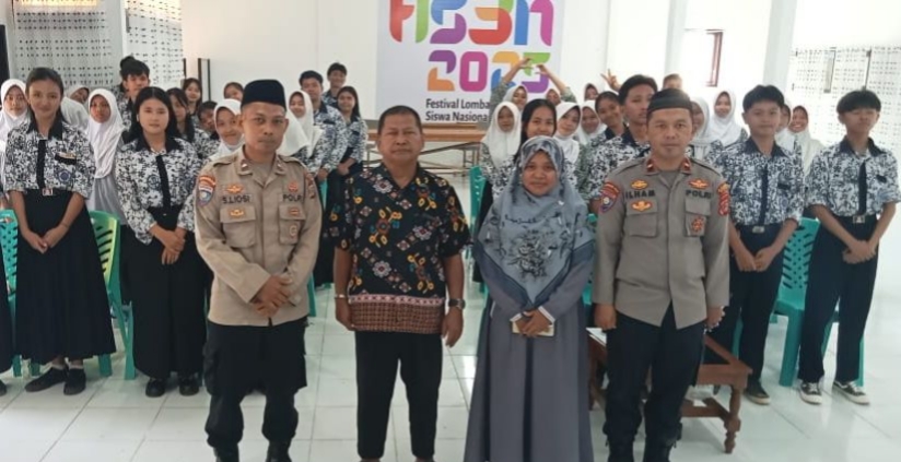 Tim Da’i Polri Ipda Ilham Sriwan, Aiptu Ridwan, dan Aipda Sofyan Al Liosi menyampaikan materi terkait pembentukan karakter dan kesadaran hukum di kalangan pelajar.