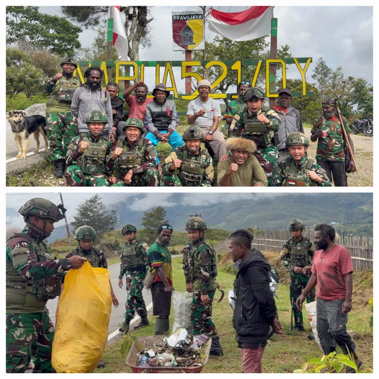 Napua Three Fakta News-Satuan Tugas (Satgas) Yonif 521/DY, berkolaborasi bersama masyarakat menggelar karya bakti, dengan membersihkan lingkungan pemukiman warga, jalan kampung dan fasilitas umum, di Distrik Napua, Kabupaten Jayawijaya, Papua Pegunungan, Rabu (11/2/2026).