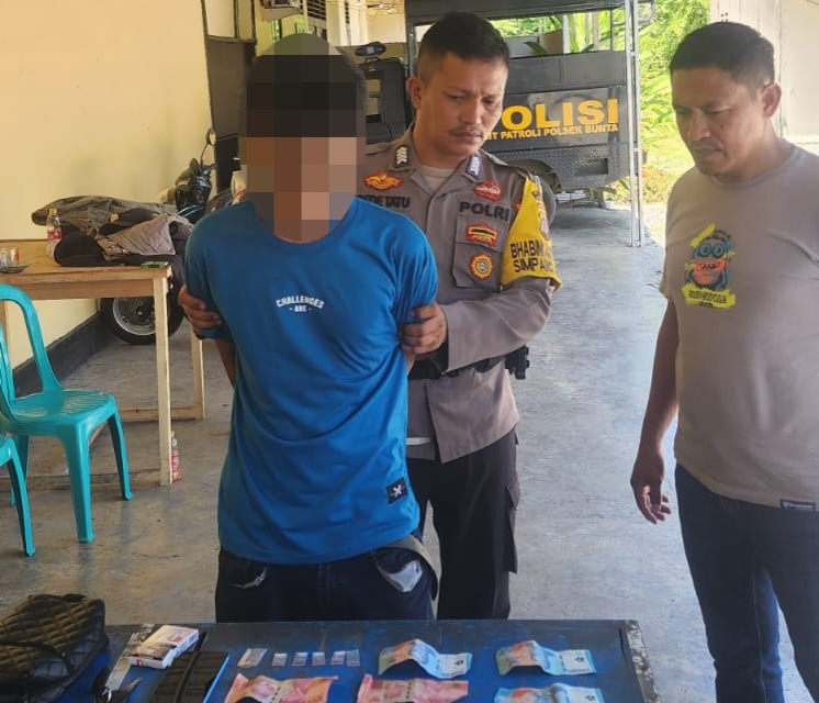 Banggai Three Fakta News-Aparat Polsek Bunta Polres Banggai, mengamankan seorang pria inisial BF (41), diduga pengedar narkotika golongan 1 jenis sabu-sabu, setelah melakukan kasus Kekerasan Dalam Rumah Tangga (KDRT) terhadap istrinya, Senin (6/4/2026).
