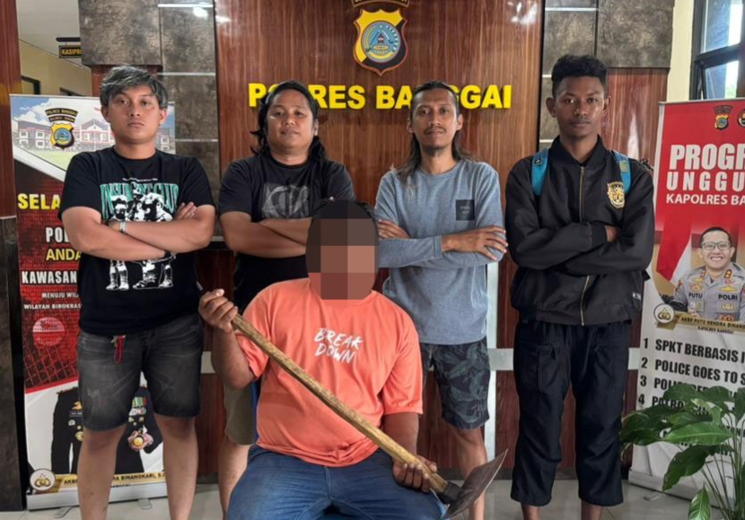 Banggai Three Fakta News-Tim Resmob Tompotika Satuan Reserse Krininal (Sartreskrim) Polres Banggai mengamankan seorang pria inisial HM (33) diduga pelaku tindak pidana penganiayaan dengan menggunakan alat pertanian jenis cangkul, di Jalan DR. Moh. Hatta Kecamatan Luwuk Selatan, Selasa (7/10/2025).