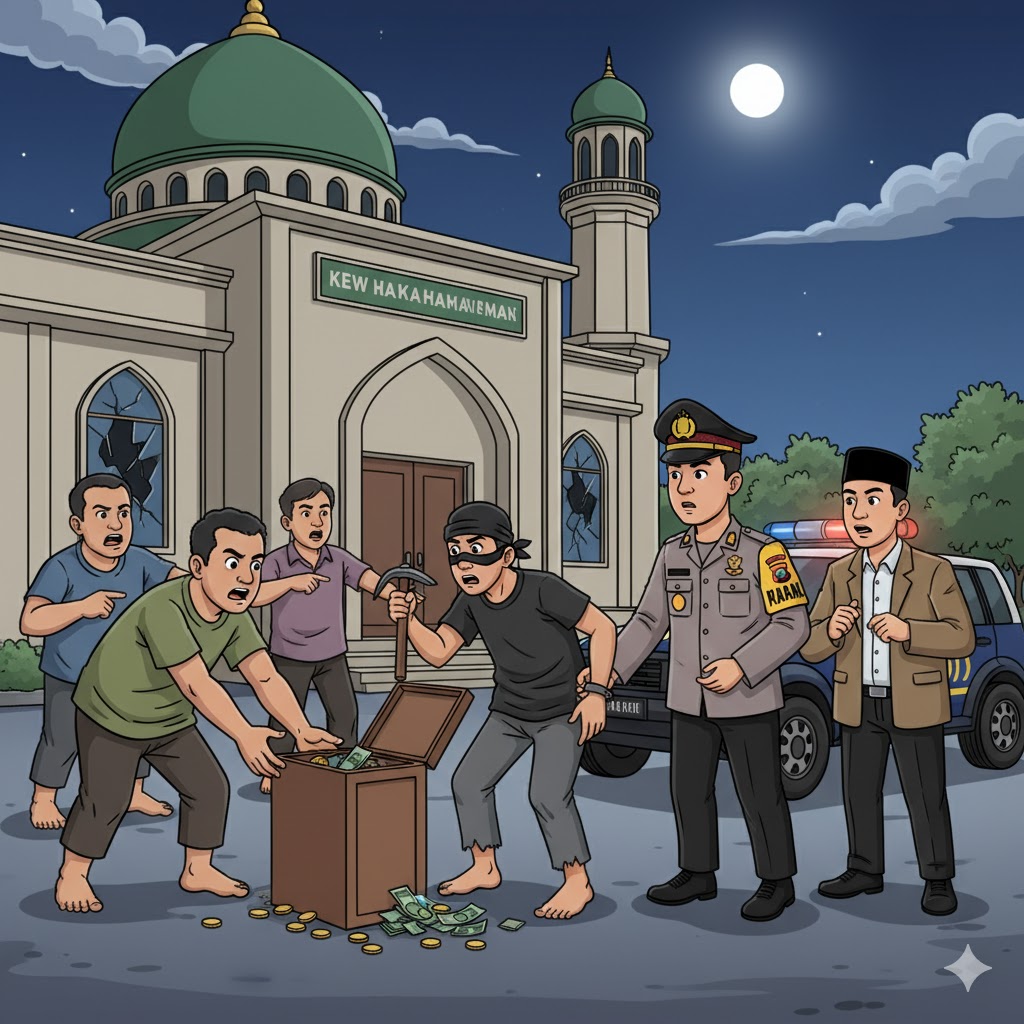 Touna Three Fakta News-Aksi percobaan pencurian uang kotak amal yang dilakukan seorang pria inisial MAG (43), di Masjid Nurul Huda, Desa Sumoli, Kecamatan Ratolindo, Tojo Una Una (Touna), berhasil digagalkan warga setempat, Kamis (30/10/2025) malam.
