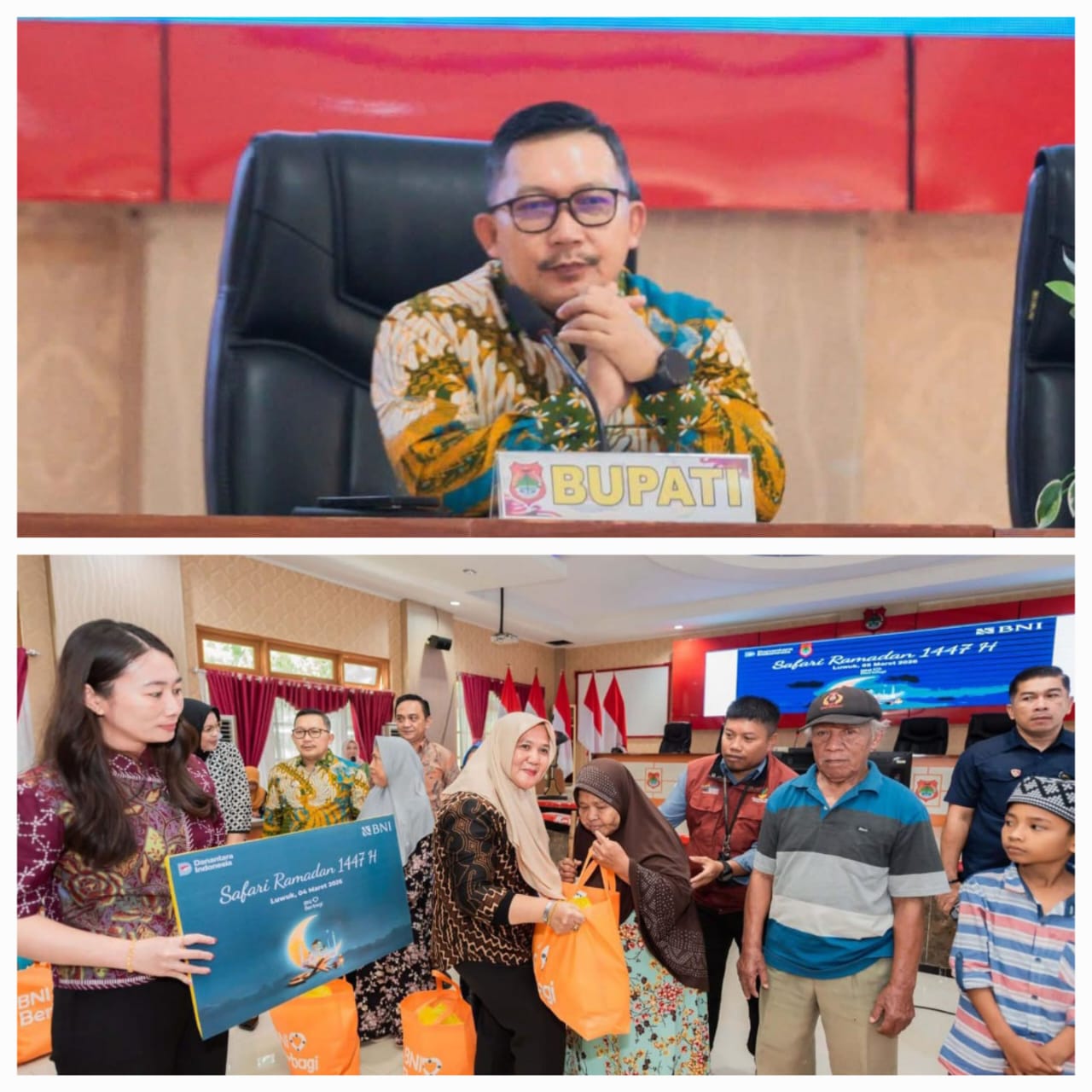 “Atas nama pemerintah daerah dan masyarakat Kabupaten Banggai mengucapkan terima kasih yang setinggi-tingginya kepada BNI Cabang Luwuk atas perannya ikut membangun daerah,” kata Bupati Amirudin disela penyerahan paket sembako program BNI Berbagi, di ruang rapat umum Setda Banggai, Luwuk Selatan, Kamis (5/3/2026).