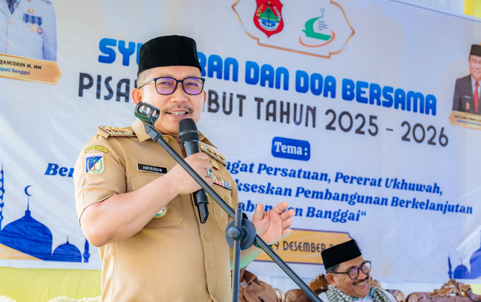 Banggai Three Fakta News-Bupati Banggai, Ir. H. Amirudin Tamoreka, menghadiri syukuran dan doa bersama dalam rangka pisah sambut tahun 2025 – 2026, di halaman Kantor Camat Nambo, Kabupaten Banggai, Senin (29/12/2025).