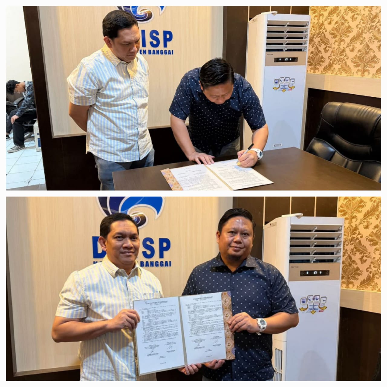 Banggai Three Fakta News-Pemerintah Kabupaten (Pemkab) Banggai, melalui Dinas Komunikasi, Informatika, Statistik, dan Persandian (DKISP) Banggai, melakukan penandatanganan serah terima barang/jasa bersama dengan PT. Sumber Data Indonesia tentang Jaringan Fiber Optic (FO) 12 Core, di ruang rapat DKISP Banggai, Kamis (5/2/2026