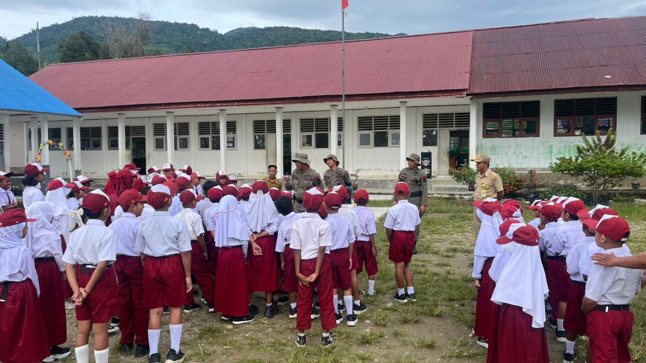 Poso Three Fakta News-Aparat Satgas III Preventif Ops Madago Raya memimpin upacara peringatan Hari Pahlawan ke-80, di SDN Taunca, Kecamatan Poso Pesisir Selatan, Kabupaten Poso, Senin (10/11/2025).