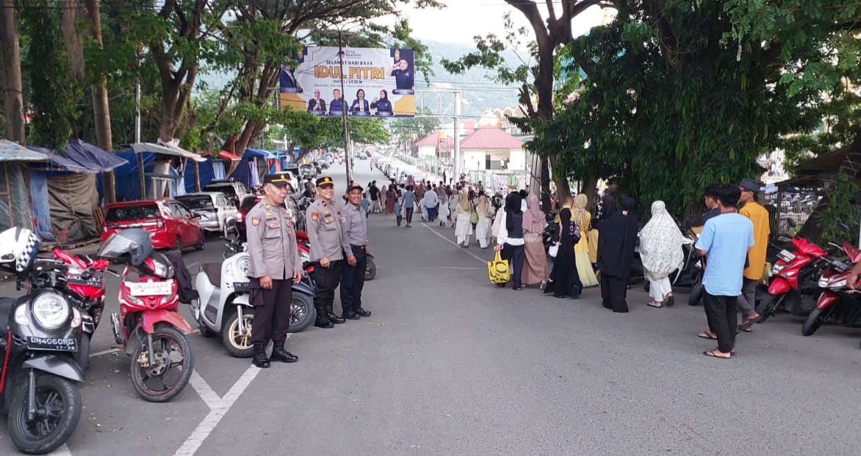 Banggai Three Fakta News-Aparat gabungan TNI-Polri dan instansi terkait mengamankan jalannya ibadah sholat Idulfitri 1447 hijriah, dengan cara terbuka maupun tertutup guna mengantisipasi hal-hal yang tidak diinginkan, di wilayah Kabupaten Banggai, Sabtu (21/3/2026).