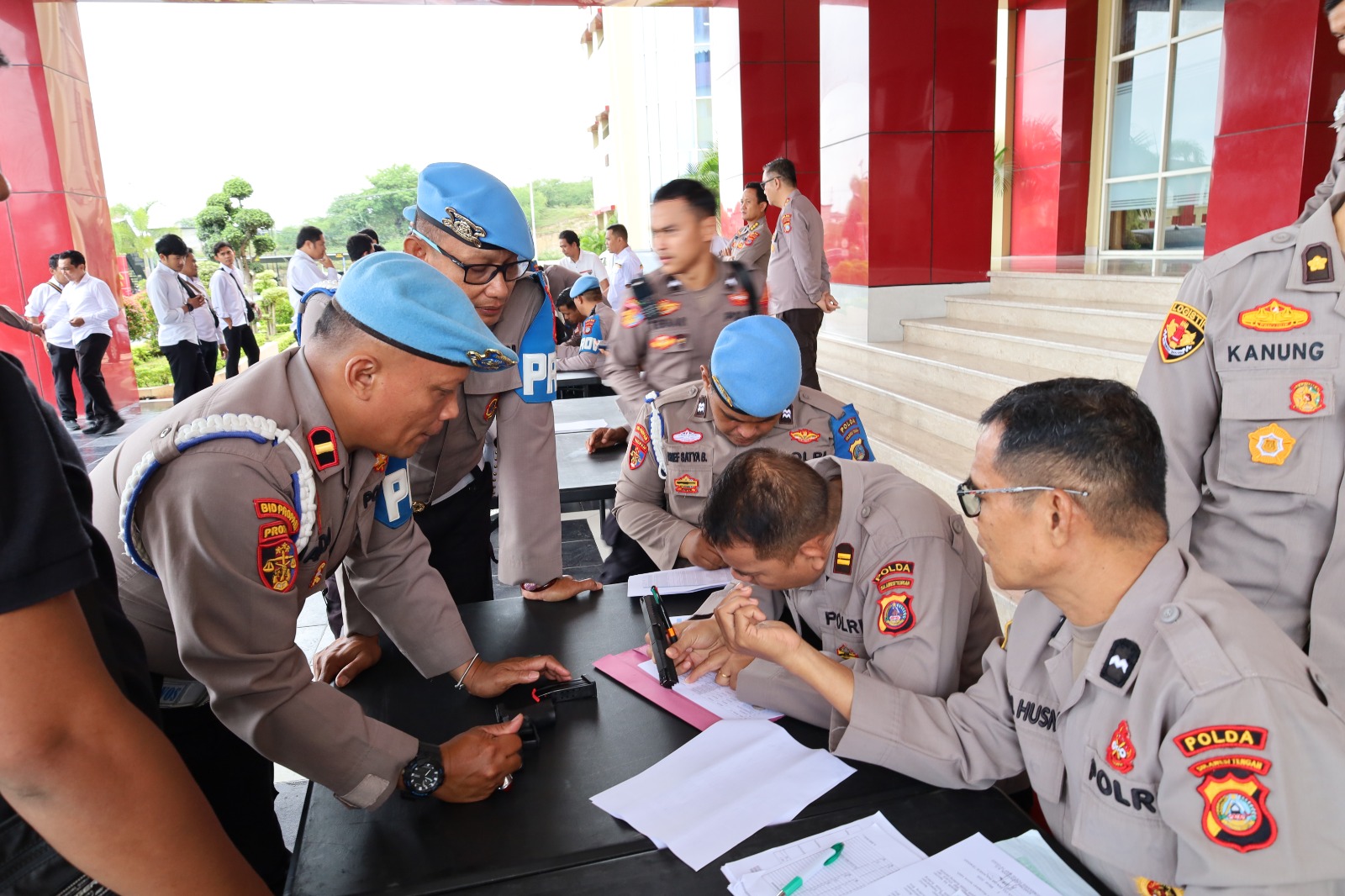 Palu Three Fakta News-Kepolisian Daerah (Polda) Sulawesi Tengah (Sulteng) melalui Bidang Profesi dan Pengamanan (Bidpropam), melakukan pengecekan Senjata Api (Senpi) kepada seluruh personel, di lobi Mapolda Sulteng, Senin (09/03/2026)