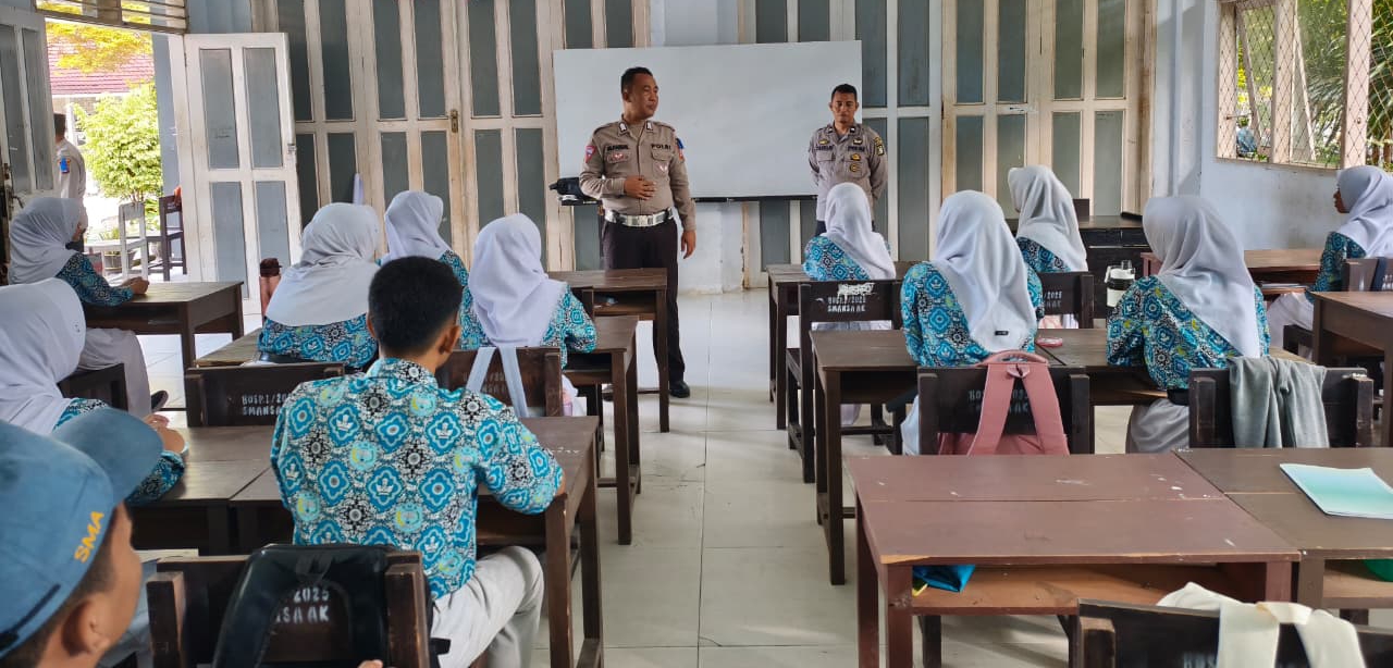 Touna Three Fakta News-Subsatgas Pendidikan Masyarakat (Dikmas) Operasi Keselamatan Tinombala 2026, Polres Tojo Una-Una (Touna) menyosialisasikan aturan berlalu lintas kepada siswa-siswi, di SMA Negeri 1 Ampana Kota, Kabupaten Touna, Kamis (5/2/2026).