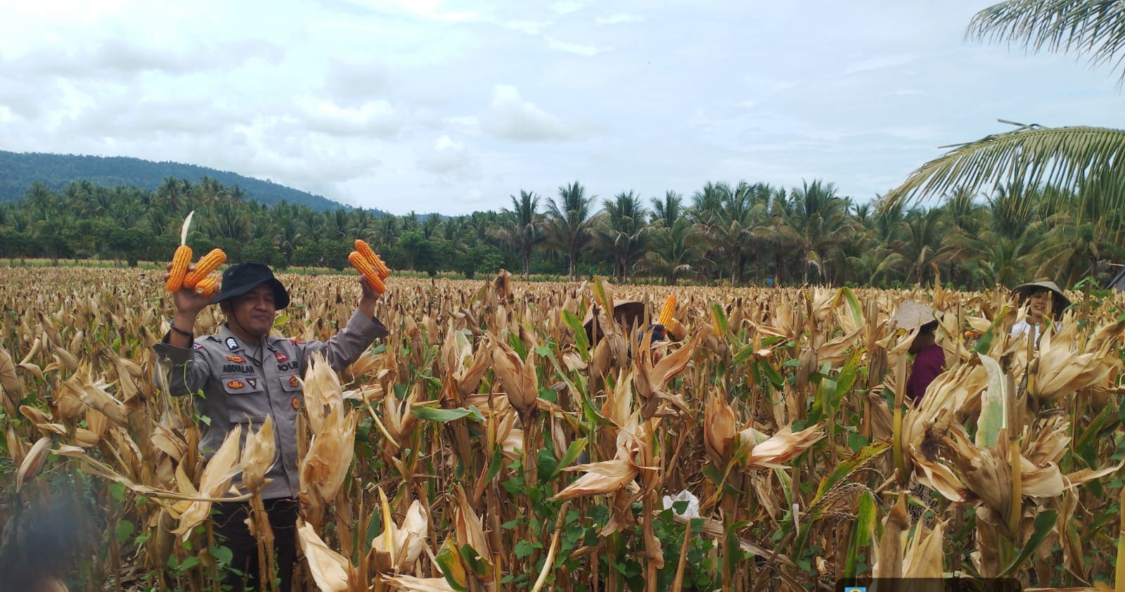 Banggai Three Fakta News-Aparat Polsek Nuhon melakukan pendampingan panen raya jagung, berkolaborasi dengan masyarakat, di Desa Kabua-bua, Kecamatan Nuhon, Kabupaten Banggai, Rabu (7/1/2026).