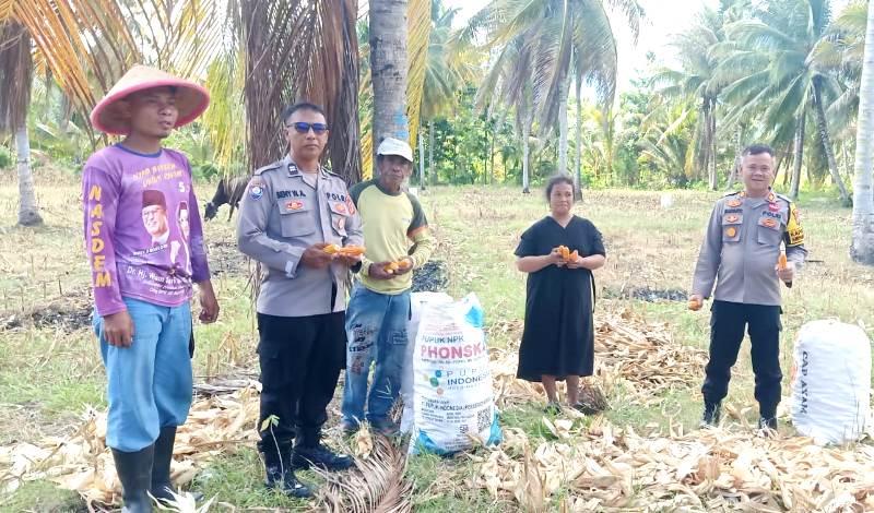 Dalam peninjauan tersebut, Kapolsek didampingi Kanit Binmas Aiptu Beny Abubakar dan Bhabinkamtibmas Aipda I Nengah S., melakukan pengecekan langsung terhadap proses panen jagung di lahan milik warga setempat.
