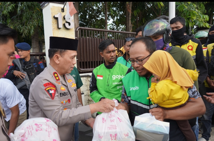 Kegiatan tersebut merupakan wujud kepedulian Polda Sulteng dan Bhayagkari, dengan membagikan sebanyak 1.000 paket takjil kepada pengemudi ojek online (ojol) dan masyarakat yang melintas.