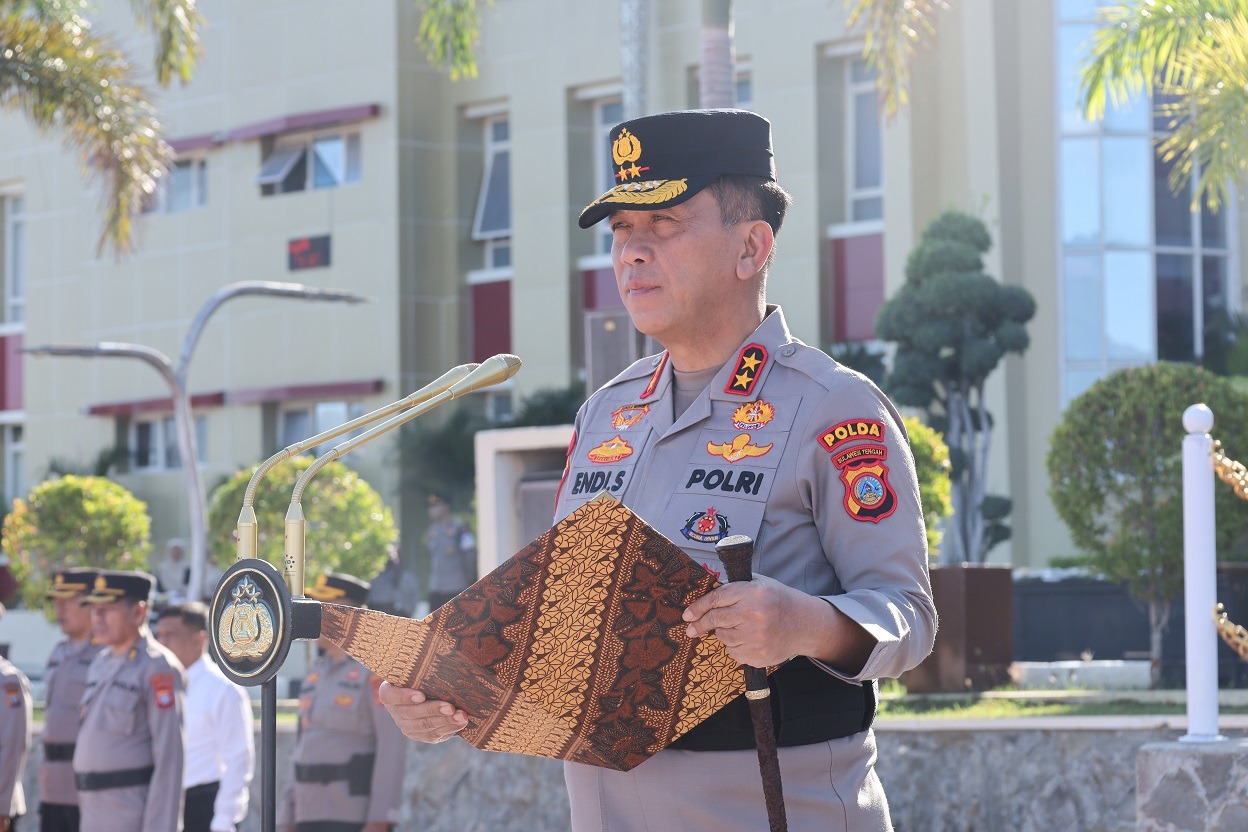 Palu Three Fakta News-Kepala Kepolisian Daerah (Kapolda) Sulawesi Tengah (Sulteng) Irjen Pol Dr Endi Sutendi, bertindak sebagai Inspektur Upacara (irup) pada upacara Peringatan Hari Kesadaran Nasional, di lapangan apel Mapolda Sulteng, Jumat (17/4/2026).