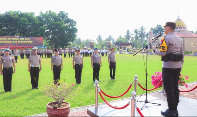 Banggai Three Fakta News-Kapolres Banggai AKBP Putu Hendra Binangkari, memimpin upacara kenaikan pangkat sebanyak 68 personelnya periode 1 Januari 2026, di lapangan Mapolres Banggai, Rabu (31/12/2025).