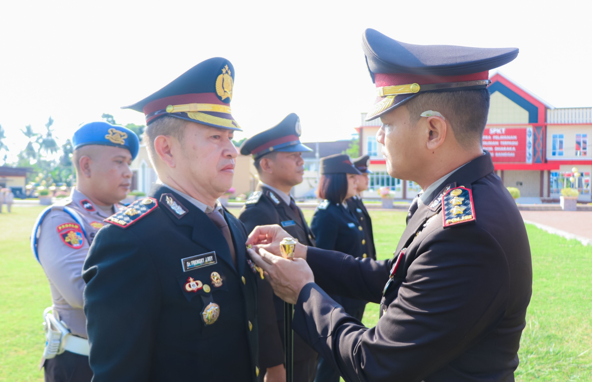 Penghargaan Satyalencana Pengabdian 32 Tahun diberikan kepada Wakapolres Kompol Dr. Frangky Jefry Rey, SH, S.Pd, MH, IPTU I Gusti Ketut Deni Ambara dari Polsek Toili, IPTU Silvanus selaku Wakapolsek Kintom dan IPTU Eli Jaeni, PA Siaga Bag Ops.