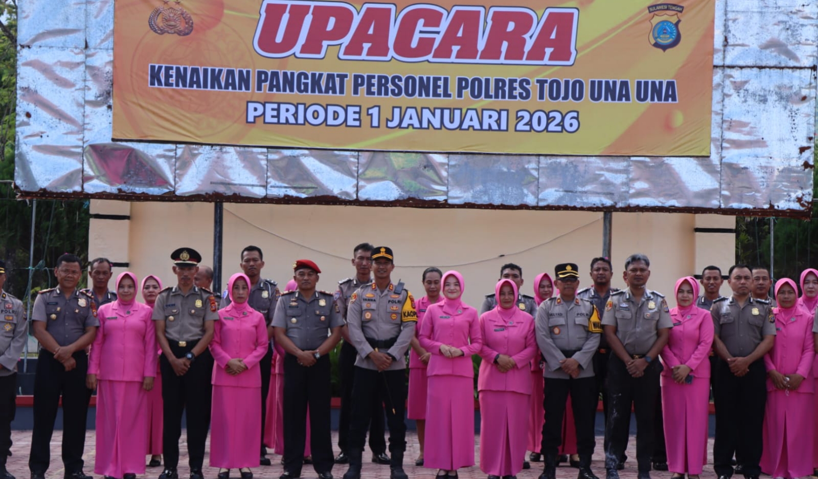 Touna Three Fakta News-Kapolres Tojo Una-Una (Touna) AKBP Yanna Djayawidya, memimpin upacara kenaikan pangkat sebanyak 38 personelnya periode 1 Januari 2026, di halaman Mapolres Touna, Rabu (31/12/2025).