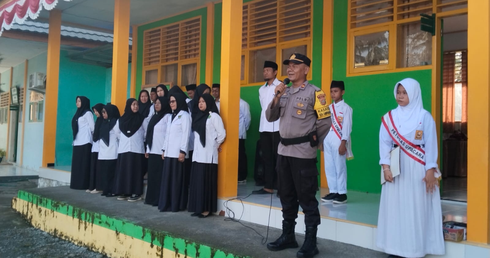 Touna Three Fakta News-Kapolsek Ampana Kota Iptu Maryanto, bertindak sebagai pembina upacara dan memberikan materi anti bullying dan bahaya narkoba kepada siswa-siswi Madrasah Tsanawiyah Negeri (MTSN) Tojo Una-Una (Touna), di Desa Sabulira Toba, Kecamatan Ratolindo, Kabupaten Touna, Senin (15/12/2025).