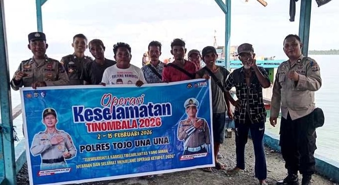 Touna Three Fakta News-Aparat Personel Polres Tojo Una-Una (Touna) yang tergabung dalam Operasi (Ops) Keselamatan Tinombala 2026, menggelar kegiatan Pembinaan dan Penyuluhan (Binluh), di kawasan Pelabuhan Sampole, Desa Labuan, Kecamatan Ratolindo, Kabupaten Touna, Rabu (11/2/2026).