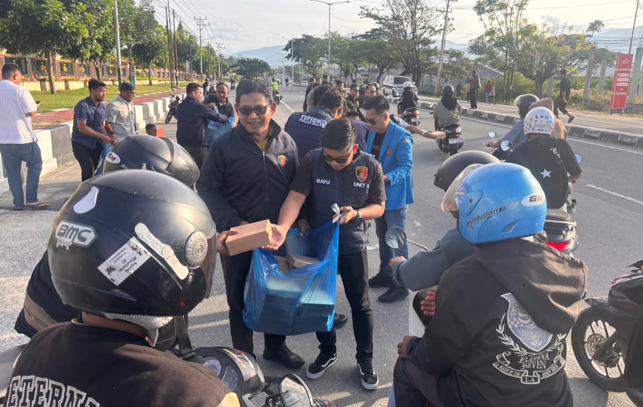 Palu Three Fakta News-Aparat Ditreskrimsus Polda Sulawesi Tengah (Sulteng) melalui anggota Subdit Tipikor menggelar aksi kemanusiaan dengan membagikan paket takjil gratis kepada masyarakat pengguna jalan, di depan Mapolda Sulteng, Jalan Soekarno-Hatta, Kota Palu, Jumat (27/2/2026).