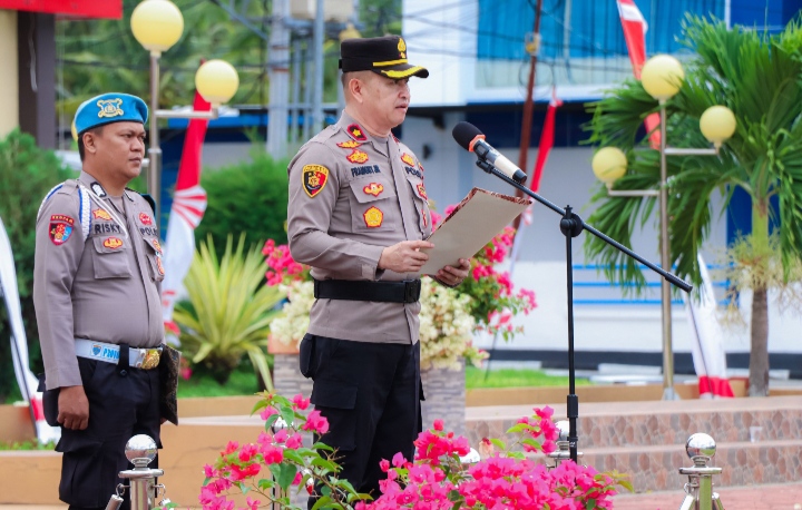 Banggai Three Fakta News-Aparat Polres Banggai menggelar upacara Kesadaran Nasional, untuk meneguhkan kembali komitmen pengabdian dan profesionalisme seluruh personel Polri, di lapangan apel Mapolres Banggai, Jumat (17/4/2026).