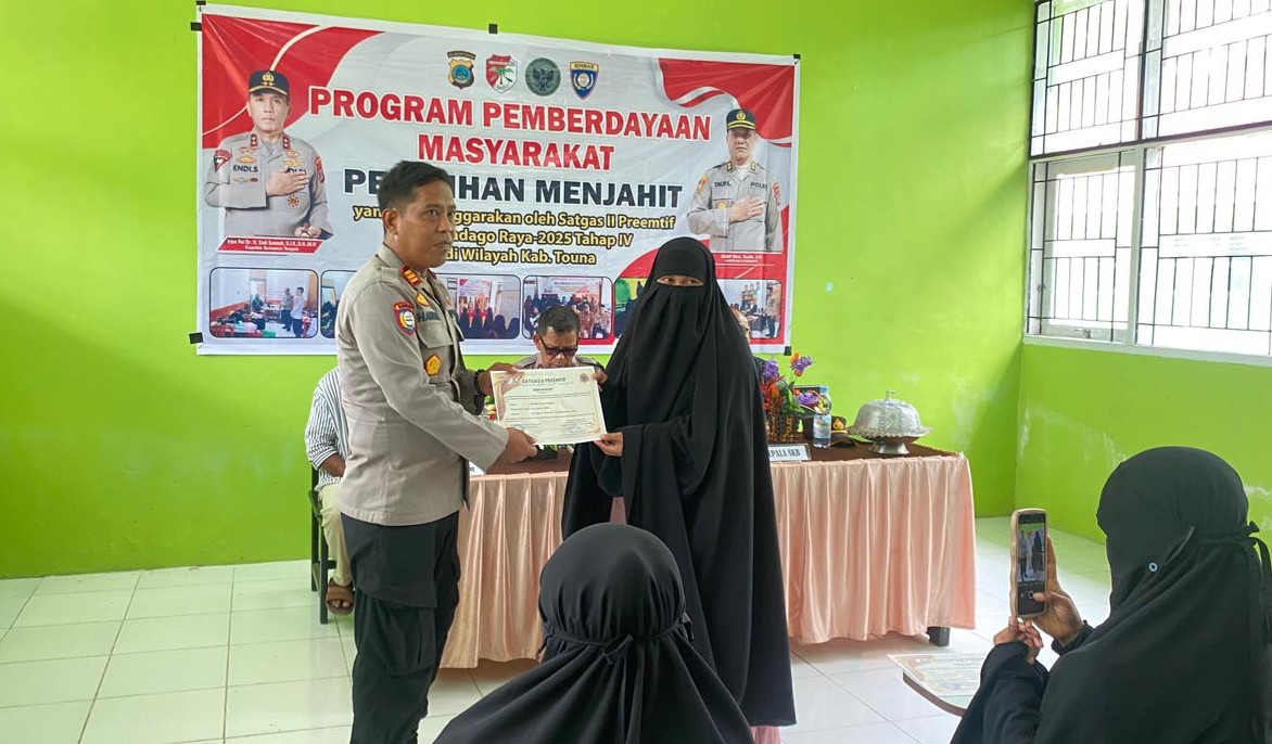 Touna Three Fakta News-Wakapolres Tojo Una-Una (Touna) Kompol Mulyadi, menutup secara resmi, program pemberdayaan masyarakat pelatihan menjahit, yang diselenggarakan oleh Satgas II Preemtif Operasi Madago Raya 2025 Tahap IV, di Kantor Sanggar Kegiatan Belajar (SKB) Touna, Sabtu (29/11/2025).